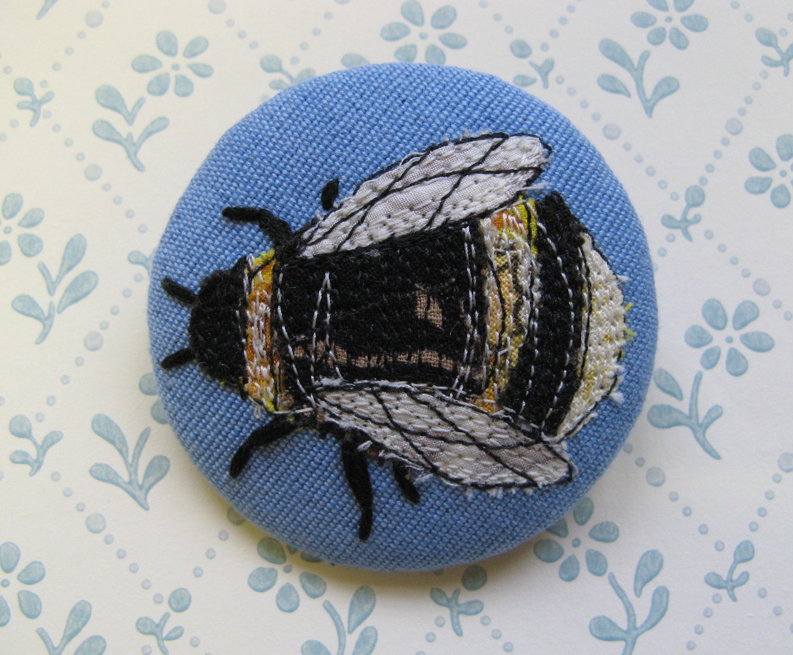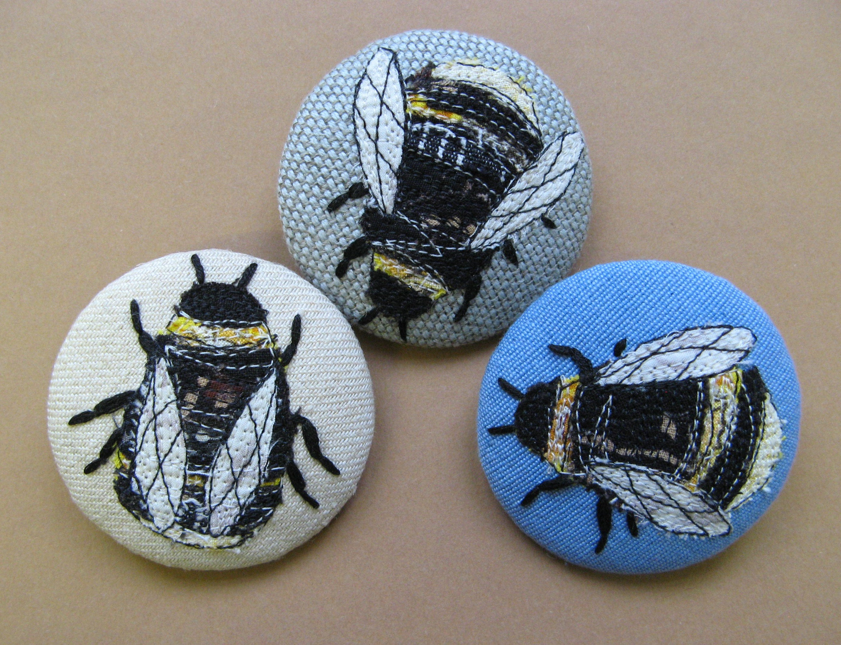 Filed under bees, drawing, embroidered brooches, hand embroidery, machine embroidery, recycled fabrics