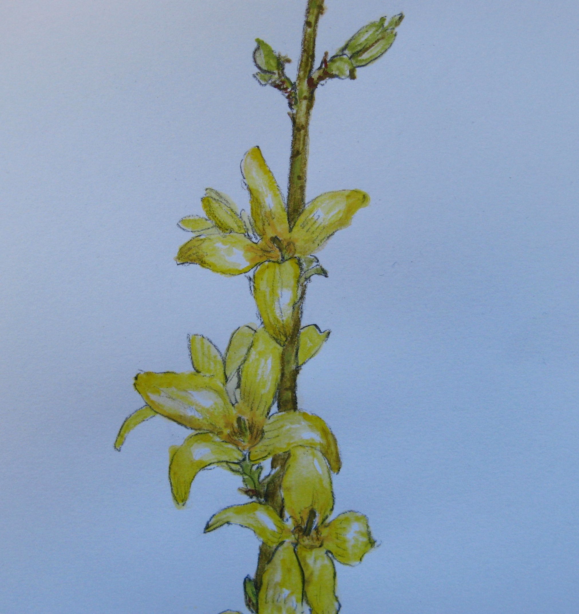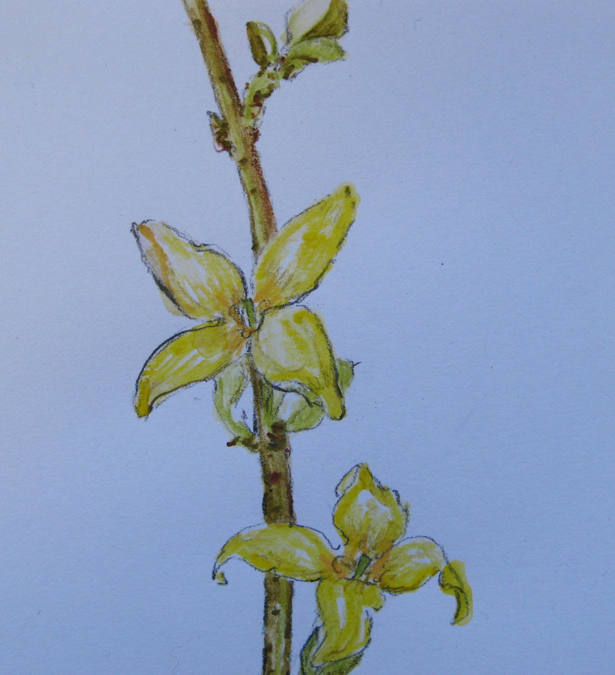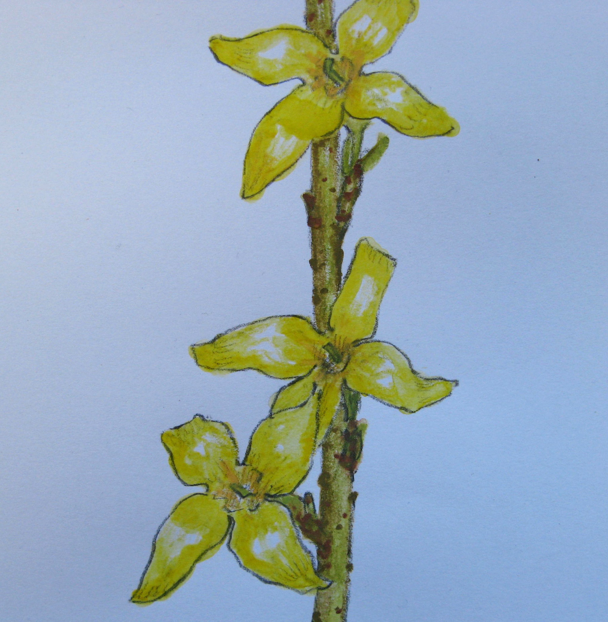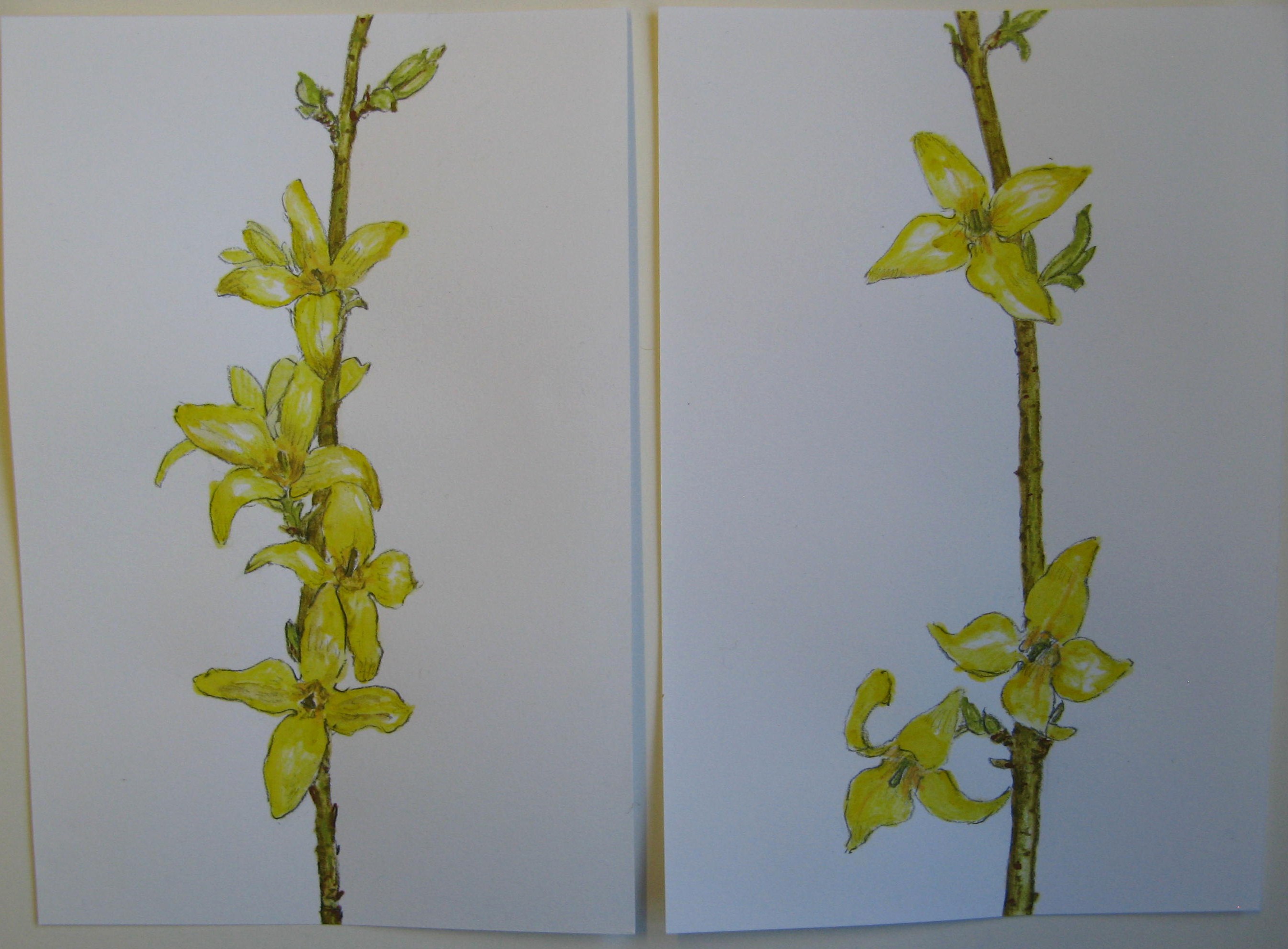 Inspired by my forsythia drawings, I made this little stitched sampler this week.